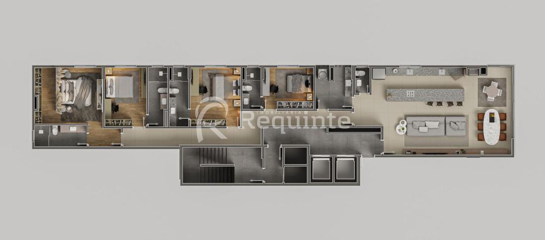 Sala de estar e jantar integrados;