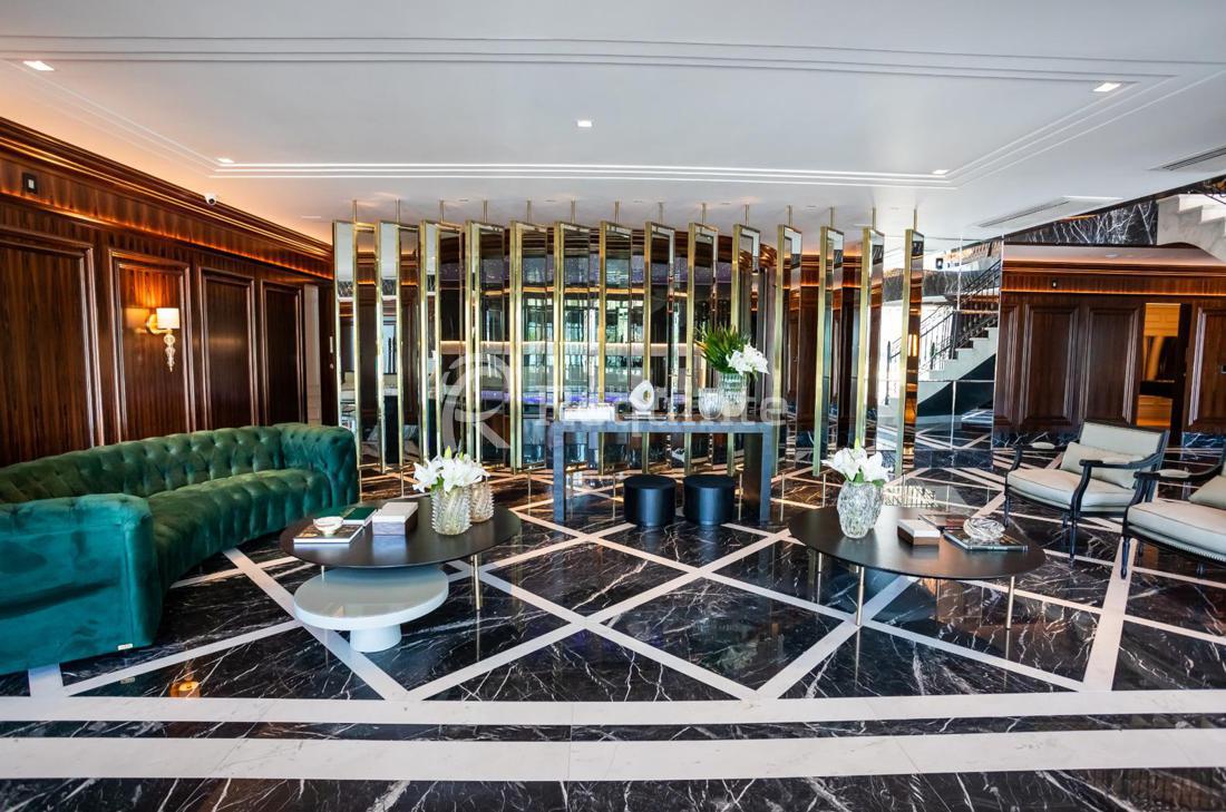 2 Salões de festas moduláveis de frente para o mar, mobiliados e decorados em estilo neoclássico, sonorizados climatizados, com churrasqueiras a gás, adegas e chopeiras torre;